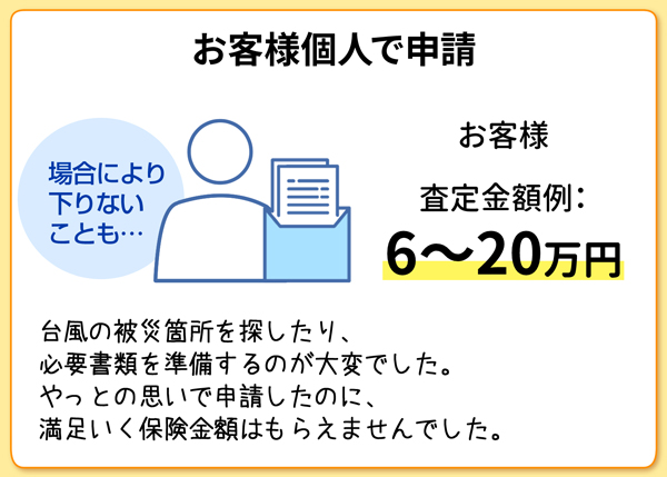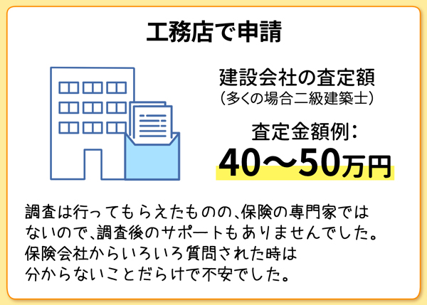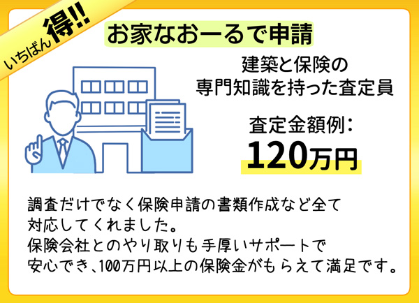 お家なおーるは建築と保険の専門知識を持ったプロなので、保険金額が期待できるとのこと。