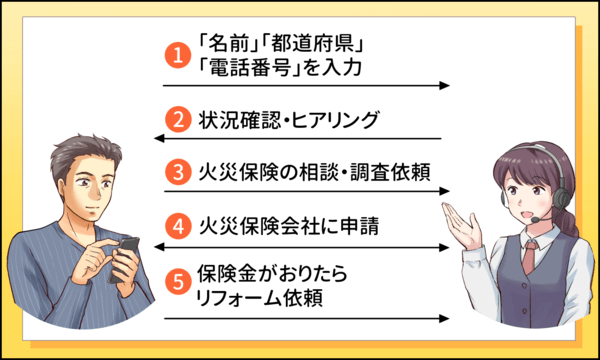 するとすぐに専任のアドバイザーから連絡があり、後日あらためて、火災保険が使えるかどうかの調査をしてもらいました。