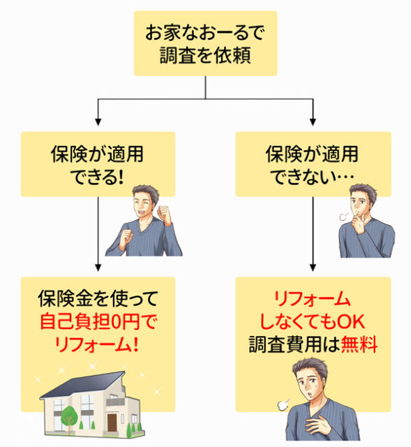 リフォームしなくても大丈夫なので、無料で保険金が使えるか調べることが可能なんです。