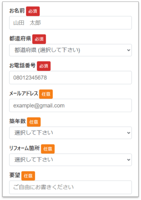 申し込みは「名前」「都道府県」「電話番号」の3つを入力するだけ。